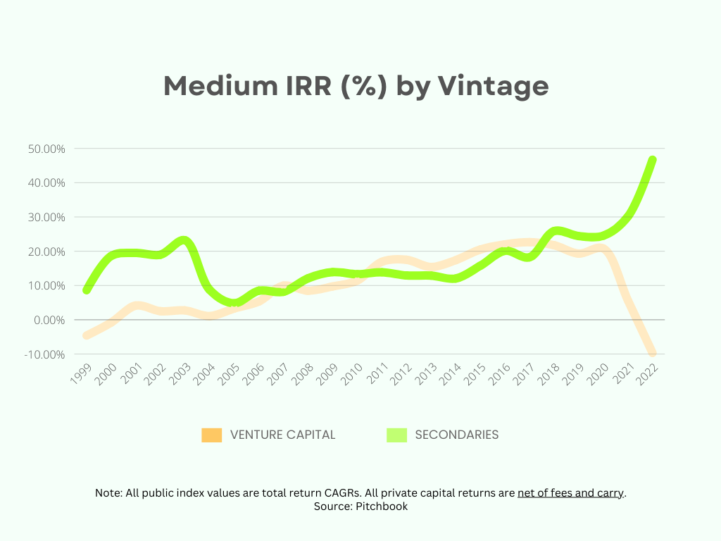 Driven by the recalibration of valuations, we have witnessed outsized returns on secondary investments compared to venture capital since the 2021 vintage, which has created unique opportunities in the secondary market.
